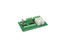 Expansion board for the dScript modules providing low voltage DC inputs (analogue or digital) and two extra relays, powered and controlled through the dS modules RS485 port.