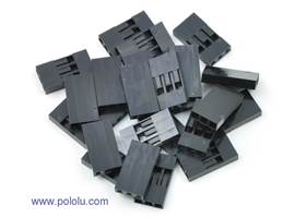 These three-pin housings work with our crimp pins to let you quickly make custom cables that mate with various 0.1"-spaced connectors, including male or female headers and solderless breadboards. They are sold in packs of 25.