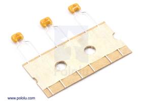 These 0.1 μF 100 V ceramic capacitors have many uses, including noise suppression on motors. The leads are formed with 0.2" spacing for easy breadboard use. You can see more information about noise suppression in Polou's motor driver application note.