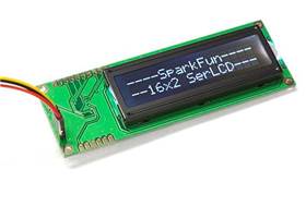 This is the latest evolution of SparkFun's serial LCD. Included on a single board is a 16x2 LCD and an embedded circuit based around a PIC 16F88. The on-board PIC takes a TTL serial input and prints the characters it receives onto the LCD. The installed firmware also allows for a number of special commands so you can clear the screen, adjust the backlight brightness, turn the display on/off, and more.
