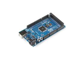 The Arduino Mega is a microcontroller board based on the ATmega2560. It has 54 digital input/output pins (of which 14 can be used as PWM outputs), 16 analog inputs, 4 UARTs (hardware serial ports), a 16 MHz crystal oscillator, a USB connection, a power jack, an ICSP header, and a reset button. It contains everything needed to support the microcontroller; simply connect it to a computer with a USB cable or power it with a AC-to-DC adapter or battery to get started. The Mega is compatible with most shields designed for the Arduino Duemilanove or Diecimila.
