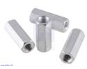 These 3/8" -long hexagonal female-female aluminium standoffs keep parts spaced 0.375 inches (9.5 mm) apart. They are like elongated, 3/16″-wide hex nuts, with 4-40 threads running through the entire length of each standoff. They are sold in packs of 4 . More Details...