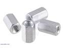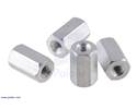 These 7/16" -long hexagonal female-female aluminium standoffs keep parts spaced 0.438 inches (11 mm) apart. They are like elongated, 3/16″-wide hex nuts, with 4-40 threads running through the entire length of each standoff. They are sold in packs of 4 . More Details...