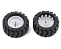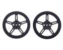 These black plastic wheels have silicone tires and measure 40 mm (1.57″) in diameter, and they press-fit onto 3mm D shafts, such as those on our micro metal gearmotors . This product is a pair of wheels . More Details...