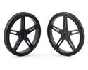 These black plastic wheels have silicone tires and measure 90 mm (3.54″) in diameter, and they press-fit onto 3mm D shafts, such as those on our micro metal gearmotors . More Details...