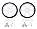 These versatile white plastic wheels have silicone tires and measure 80 mm (3.15″) in diameter. What makes them special is the included set of interchangeable collets that can be inserted into the wheel to firmly grab four different shaft types: 3mm D, 3mm round, 4mm D, and 4mm round. More Details...