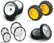 Use the pair of tires in the Tamiya 70145 narrow tyre set for small and medium-sized robots that must make precise movements. With a 58 mm diameter and solid, rounded, 16 mm treads, these wheels will let your robot turn with little friction, even on rough surfaces like carpet. More Details...