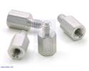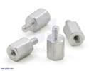 These hexagonal male-female aluminium standoffs keep parts spaced 0.25" (6 mm) apart and are great for building a multi-level robot chassis. Both ends of these 3/16" -wide standoffs have 4-40 threads. The standoffs are sold in packs of 4 . More Details...