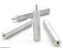 These hexagonal male-female aluminium standoffs keep parts spaced 1.5" (38 mm) apart and are great for building a multi-level robot chassis. Both ends of these 3/16" -wide standoffs have 2-56 threads. The standoffs are sold in packs of 4 . More Details...
