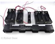 Enclosed battery holder for four AA cells. This holder features a lid that slides over the batteries and snaps into place to fully enclose them. It also features a switch that lets you open and close the electrical connection between the batteries and the holder’s leads. More Details...