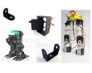 Designed to fit common standard sized servo motors these brackets allow for construction of all kinds of novel electro-mechanical devices.  The brackets have a variety of shapes and include pre-drilled holes for quick connection of the servo and other components.