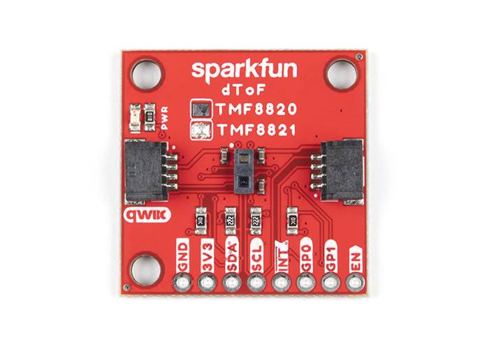 The SparkFun Qwiic dToF TMF8821 Imager is a direct time-of-flight (dToF) sensor that includes a single modular package with an associated Vertical Cavity Surface Emitting Laser (VCSEL) from AMS.