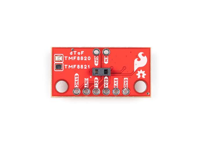 To make it even easier to get your readings, all communication is enacted exclusively via I2C, utilising our handy Qwiic system so no soldering is required to connect it to the rest of your system. However, we still have broken out 0.1”-spaced pins in case you prefer to use a breadboard. The TMF8820 offers two configurable GPIO pins and one enable (EN) pin, which are broken out as PTH pads. The board also includes a power LED and I2C pull-up resistors, each configurable via jumpers. This Mini version has a footprint that is half the size (0.5in. x 1.0in.) of our standard Qwiic Mini dToF TMF8820 Imager board. Additionally, we moved the Qwiic connectors to the back of the board. These design changes favour mounting applications where the TMF8820 sensor faces outward from an enclosure or chassis, and keeps your Qwiic cables cleanly tucked away.