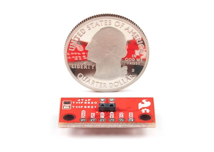 The SparkFun Qwiic Mini dToF TMF8821 Imager is a direct time-of-flight sensor that includes a single modular package with an associated VCSEL.