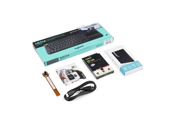 Also included with this kit are a one meter HDMI cable, a two-in-one WiFi and Bluetooth adaptor, a Wireless Keyboard with Trackpad, a Imaging Camera with a 136 Degree FOV, and a 2-pin Jumper.