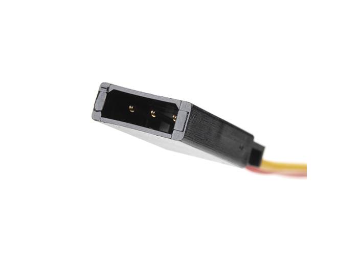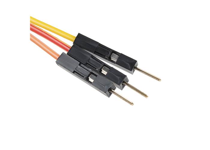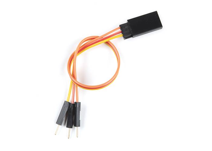 This servo cable has a shrouded male servo connector on one end, and 3x breadboard hookup pigtails at the other end. This makes it easy to connect your servo into a breadboard, development platform or anything else to which you would normally be able to attach a hookup wire.