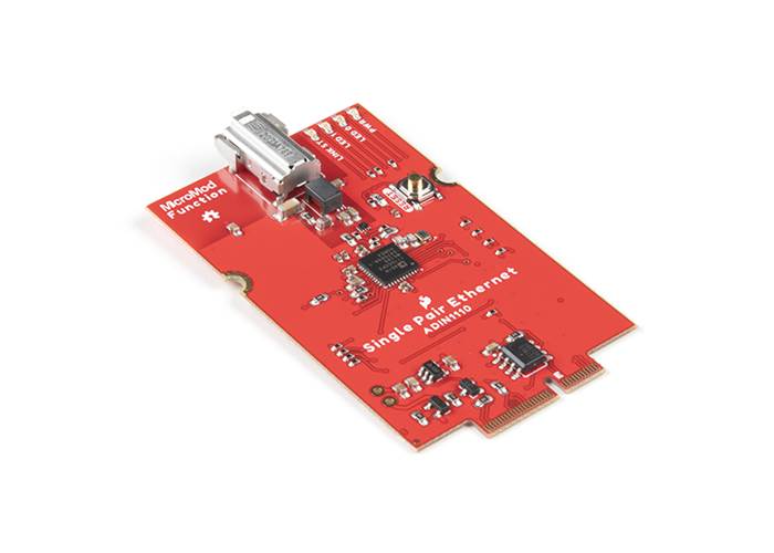 The SparkFun MicroMod Single Pair Ethernet Function Board introduces 10BASE-T1L Two-Wire Ethernet protocol into the SparkFun MicroMod ecosystem.