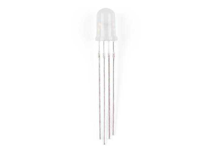 Ever hear of a thing called RGB? Red Green Blue? How about an RGB LED? These 5mm units have four pins - Cathode is the longest pin. One for each colour and a common cathode.