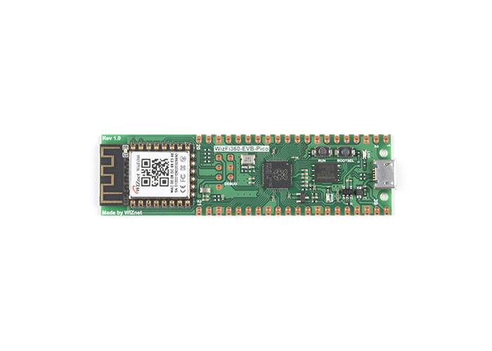 WizFi360-EVB-Pico is based on Raspberry Pi RP2040 and adds WiFi connectivity using WizFi360. It is pin compatible with Raspberry Pi Pico board and can be used for IoT Solution development.