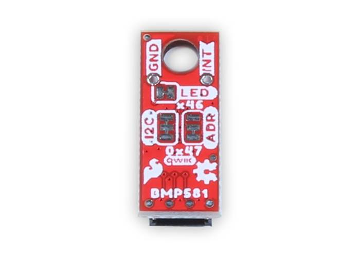 The SparkFun Qwiic Micro BMP581 Pressure Sensor is a standard-sized, 0.75in. by 0.3in. absolute pressure sensor breakout from Bosch Sensortec.