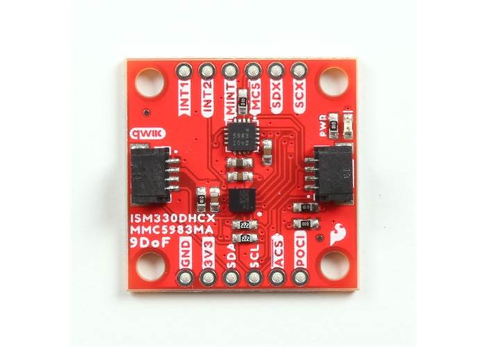 The SparkFun Qwiic 9DoF IMU Breakout combines the high-performance ISM330DHCX 3D digital accelerometer and gyroscope from STMicroelectronics with the highly sensitive MMC5983MA triple-axis magnetometer by MEMSIC to give you an ultra powerful and easy to use Qwiic enabled breakout board. Utilising our handy Qwiic system, no soldering is required to connect it to the rest of your system. However, we still have broken out 0.1"-spaced pins in case you prefer to use a breadboard.