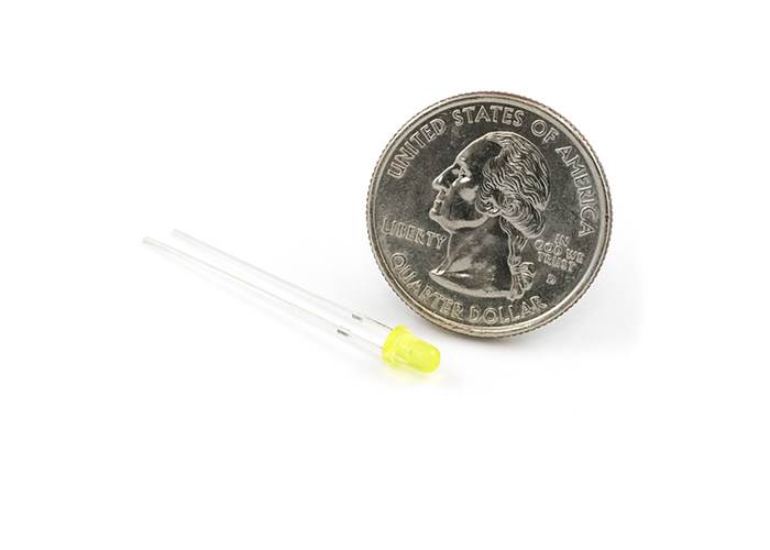 LEDs - those blinky things. A must have for power indication pin status opto-electronic sensors and fun blinky displays.This is a very standard yellow LED.