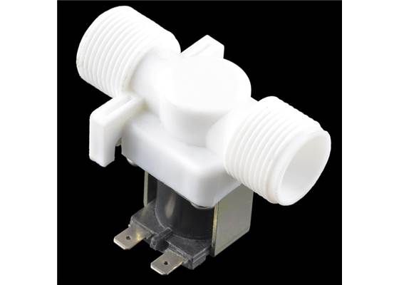 Have you ever wanted to control the flow of a liquid using your computer or microcontroller, but didn't know how? Well, here's how: The 12V solenoid controlled fluid valve. Simply connect a fluid source to the 3/4" threaded inlet and it will interrupt the flow until 12V is applied to the fast-on connectors on the solenoid.