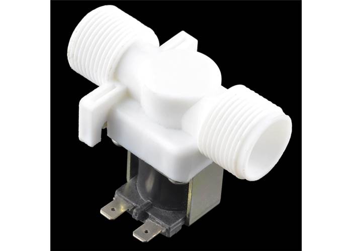 Note: This is not a gravity-feed solenoid. This means that you will need enough water pressure to fully open the valve. Check the datasheet below for exact details. It operates at a minimum of around 3 PSI, allowing around 3 L/min of flow. Although the datasheet shows the valve working at 220 VAC, it's actually 12 VDC. Our 350 GPH pump does not have enough pressure for this valve. A garden hose or other pressurized system should work just fine.