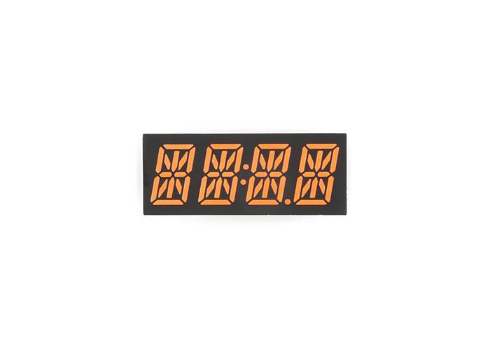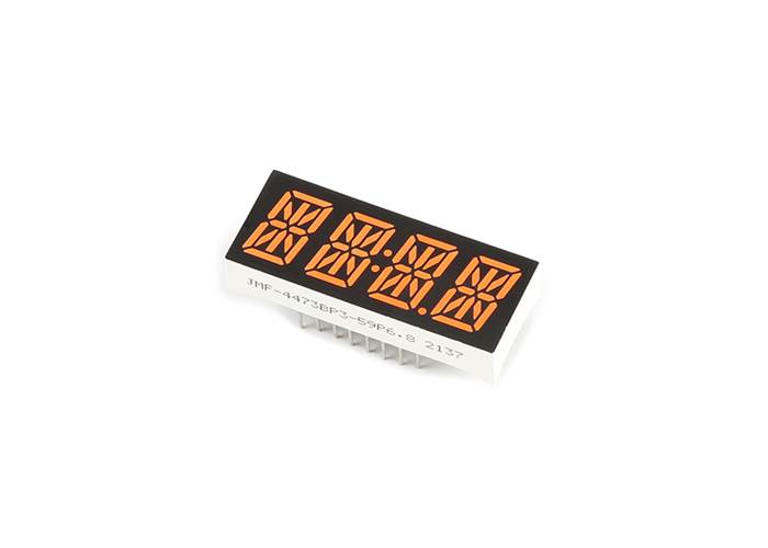 These common-anode displays feature four 14-segment digits and one decimal point per digit.