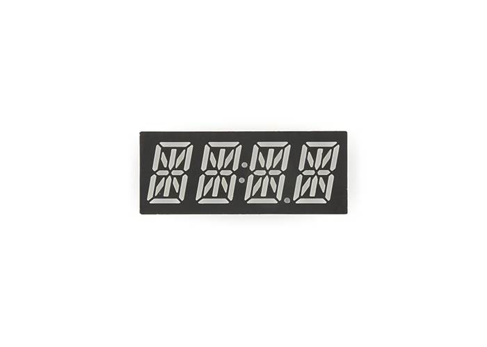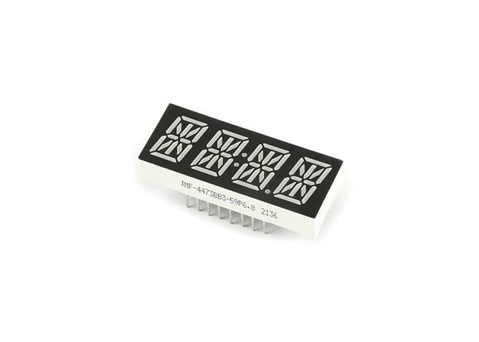 These common-anode displays feature four 14-segment digits and one decimal point per digit. The LEDs have a max forward voltage of 3.6V and a continuous forward current of 20mA.