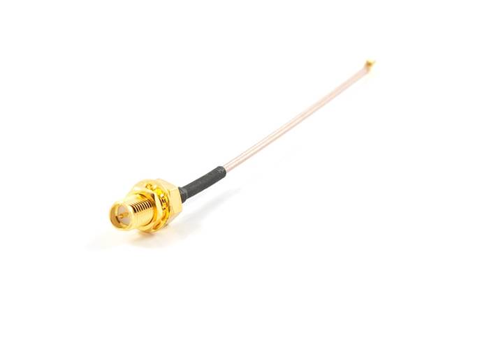This connector cable interfaces UFL RF connectors to RP-SMA antennae. Use it to attach any standard RP-SMA 2.4GHz antenna to the our WiFly Shield.