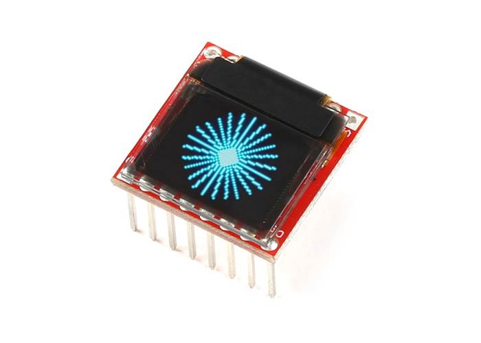 The SparkFun Micro OLED Breakout Board breaks out a small monochrome, blue-on-black OLED. It’s "micro", but it still packs a punch – the OLED display is crisp, and you can fit a deceivingly large amount of graphics on there. This breakout is perfect for adding graphics to your next Arduino project, displaying diagnostic information without resorting to serial output, and teaching a little game theory while creating a fun, Arduino-based video game. Most important of all, though, is the Micro OLED is easy to control over either an SPI or I2C interface.