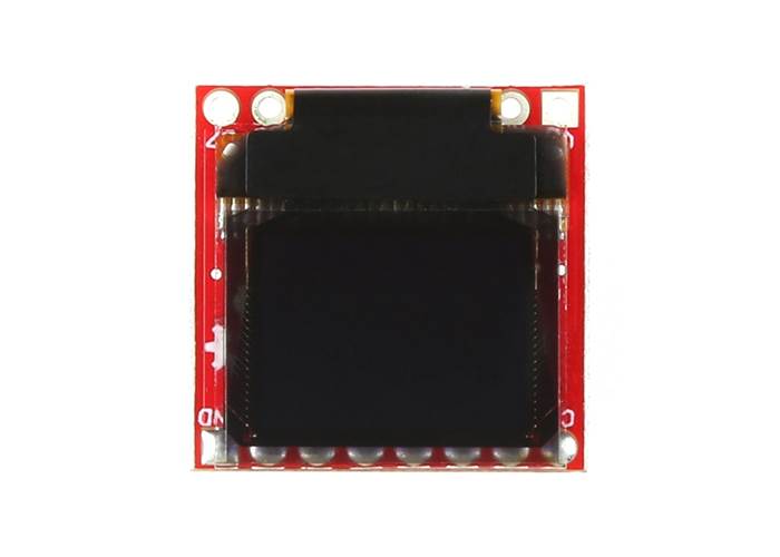 In total, the Micro OLED Breakout provides access to 16 of the OLED’s pins. Fortunately, though, you’ll only need about half of them to make the display work. The top row of pins (GND-CS) breaks out everything you’d need to interface with the OLED over an SPI or I2C interface. The pins on the bottom (D7-vB) are mostly only used if you need to control the display over a parallel interface. This board operates at 3.3V with a current of 10mA (20mA max).