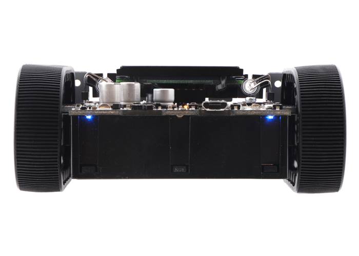 At the heart of the Zumo 32U4 is an ATmega32U4 AVR microcontroller from Microchip (formerly Atmel), and like our A-Star 32U4 programmable controllers, the Zumo 32U4 features a USB interface and ships preloaded with an Arduino-compatible bootloader. A software add-on is available that makes it easy to program the robot from the Arduino environment, and we have Arduino libraries and example sketches to help get you started. A USB A to Micro-B cable (not included) is required for programming. For advanced users who want to customize or enhance their robots with additional peripherals, the robot’s power rails and microcontroller’s I/O lines can be accessed via 0.1″-spaced through-holes along the sides and front of the main board.