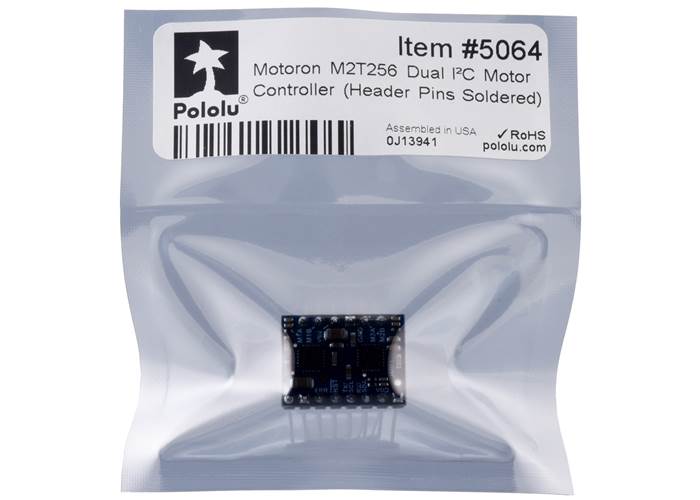 The Motoron M2T256 Dual I²C Motor Controller offers a compact solution for controlling two DC motors using an I²C interface . Multiple Motoron controllers can be connected to the same I²C bus, making it easy to expand a system with additional motors.