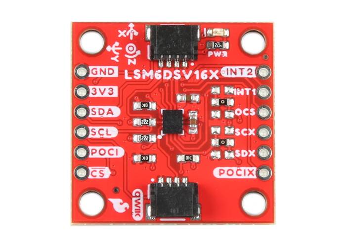 The SparkFun LSM6DSV16X 6DoF IMU is a Qwiic-enabled, AI-featured, breakout based on the LSM6DSV16X from STMicroelectronics.
