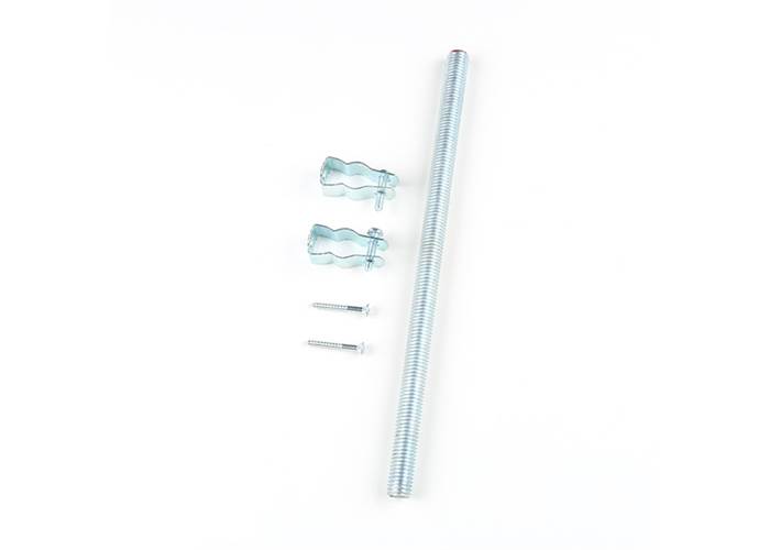 The rod included in this kit is 12in. tall and threaded 5/8in. 11-TPI (threads per inch) found on high-end surveying antennae and equipment. The kit also comes with two #10 x 1-1/2in. Phillips wood screws and two #0 ACC conduit and pipe hangers.