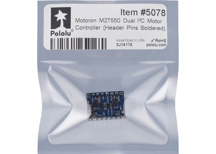 The Motoron M2T550 Dual I²C Motor Controller offers a compact solution for controlling two DC motors using an I²C interface . Multiple Motoron controllers can be connected to the same I²C bus, making it easy to expand a system with additional motors.
