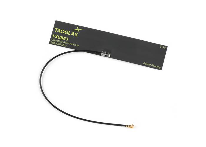 This antenna measures at 96mm x 21mm x 0.2mm with an adhesive backing. The ground-independent antenna is delivered with a 150mm, ø1.37 coaxial cable and a U.FL compatible connector for easy installation.
