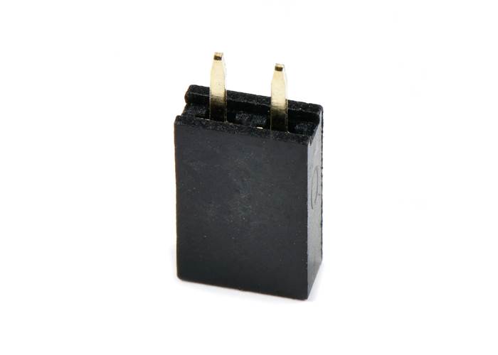 These are standard 0.1" spaced header pins that can be through-hole mounted. This header connects perfectly with most 2-pin male headers. This is a 2-Pin female header. Documents: Drawing