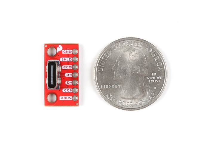 The SparkFun USB-C Breakout supplies up to three times the power as our previous USB breakouts (i.e., Type-A, micro-B, and mini-B). Also, it solves the universally frustrating dilemma of plugging a USB cable in correctly because it's reversible! The board breaks out the USB-C connector's VBUS, GND, CC1, CC2, D+, D-, and SHLD pins into a 0.1" pitch header while providing up to a nominal 1.5A of power and up to 3A depending on the upstream device.