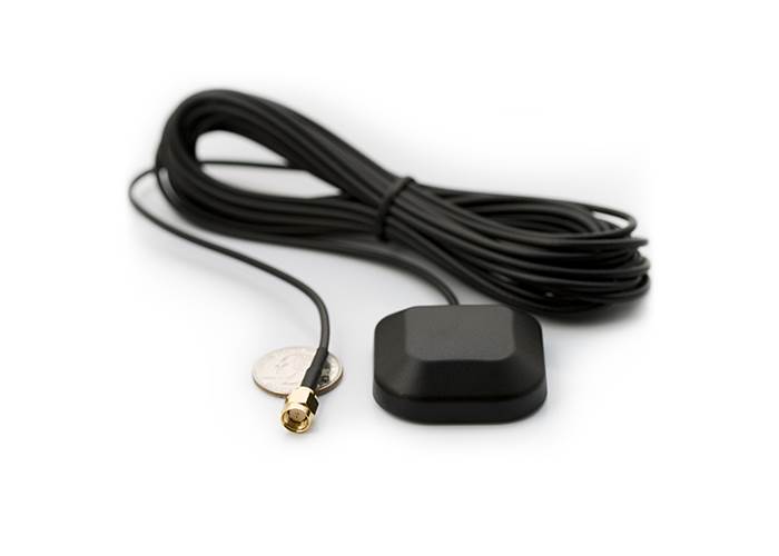 Magnet mount antenna for GPS modules operating at 3V. Designed for use with automobiles - the magnet will hold the antenna in place at speeds greater than 100mph. 5 meter cable terminated with standard male SMA connector.