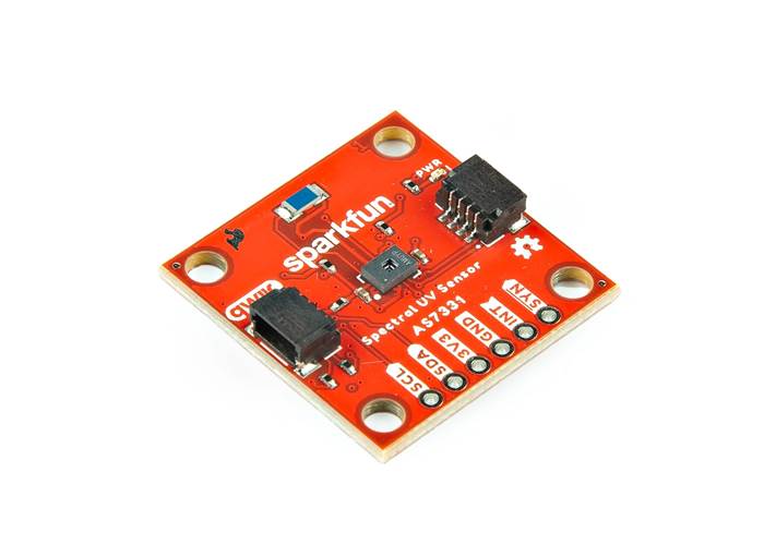 The SparkFun AS7331 Qwiic Spectral UV Sensor measures UV radiation on three channels, UVA, UVB, and UVC, with high sensitivity and accuracy.