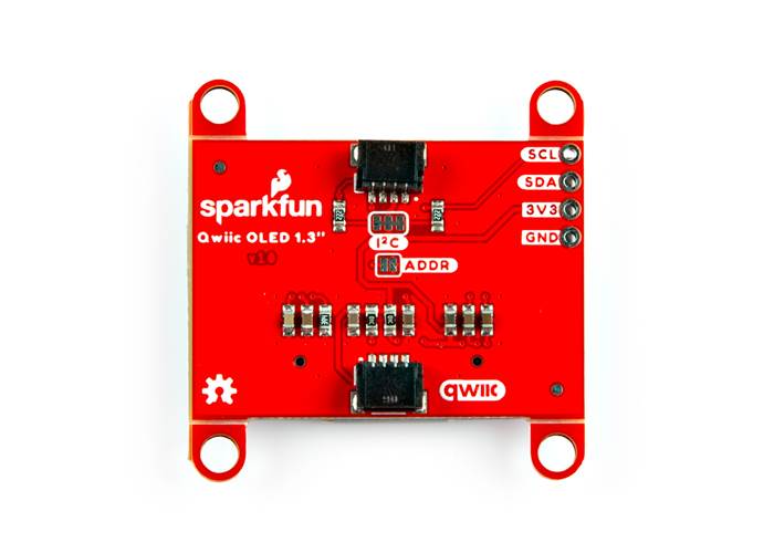 qwiic_oled_base_py) that makes it easy to use with Python, MicroPython, and CircuitPython, perfect for Raspberry Pi, RP2350, and other Python-based boards.The display uses I2C for communication. The default address is 0x3D, but we've included an address jumper on the back of the board. If you have an address conflict with another device, you can apply a bit of solder to the jumper to change the address to 0x3C, giving you the flexibility you need for complex projects.