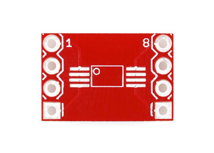 8-Pin SSOP to DIP break out board. The footprint was rotated to accommodate different width SSOP devices and can be used with 8 pin SSOPs. Designed to be used with 0.65mm pitch devices but can also be used with 0.025" pitch devices (comes out to ~0.635mm). We've made these 0.635mm devices fit just fine. Can be used with packages from 0.200" (5mm) up to 0.450" (11.4mm) in width.