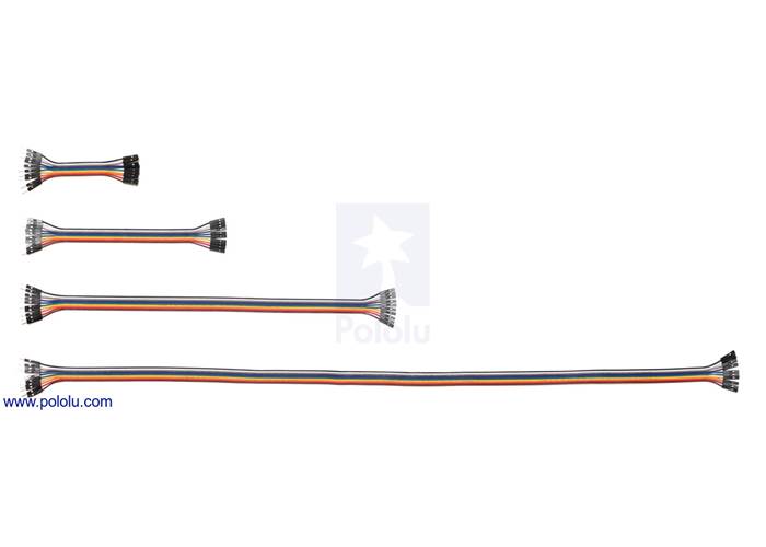 These 60″ (150 cm) premium jumper wires are made from 22 AWG stranded copper ribbon cable with male connectors on one end and female connectors on the other end, that work with 0.1″ (2.54 mm) headers, connectors, and solderless breadboards. There are ten total wires, each a different color, and individual wires or groups of wires are easy to peel apart.