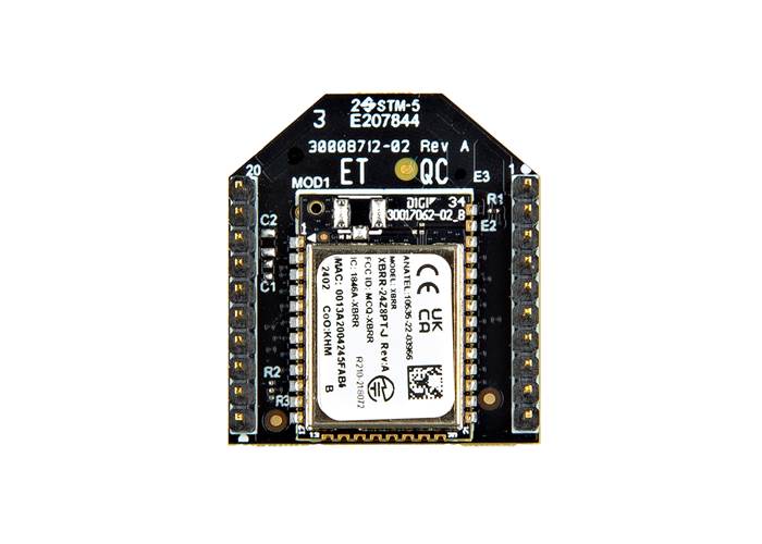 XBee RR 802.15.4 RF Modules are embedded solutions providing wireless end-point connectivity to devices. These devices use the IEEE 802.15.4 networking protocol for fast point-to-multipoint or peer-to-peer networking. They are designed for high-throughput applications requiring low latency and predictable communication timing. The XBee RR 802.15.4 RF Module supports the needs of low-cost, low-power wireless sensor networks. The devices require minimal power and provide reliable delivery of data between devices. The devices operate within the ISM 2.4 GHz frequency band. It allows local configuration with BLE using the Digi XBee Mobile app. The XBee RR is functionally equivalent to the XBee3 but does not offer the MicroPython nor the full BLE programmable services offered by the XBee3.