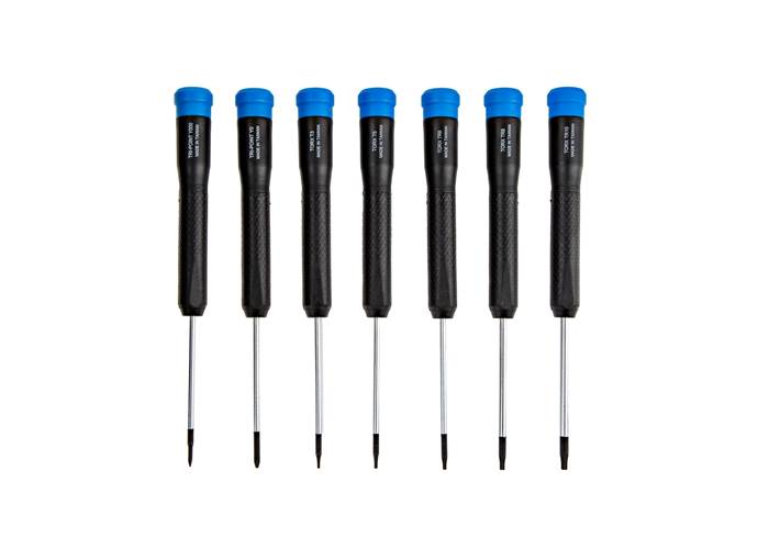 This Marlin Screwdriver Set includes 15 of the most useful fixed blade screwdrivers, selected based on data from over 50,000 repair guides on iFixit. With these drivers, you'll be ready for any project that comes your way. Each driver has a swivel top and an ergonomic, knurled, rubberized handle for extra comfort. Each precision tip is coated with black oxide and magnetized, so it hangs on to tiny screws with a steel grip.