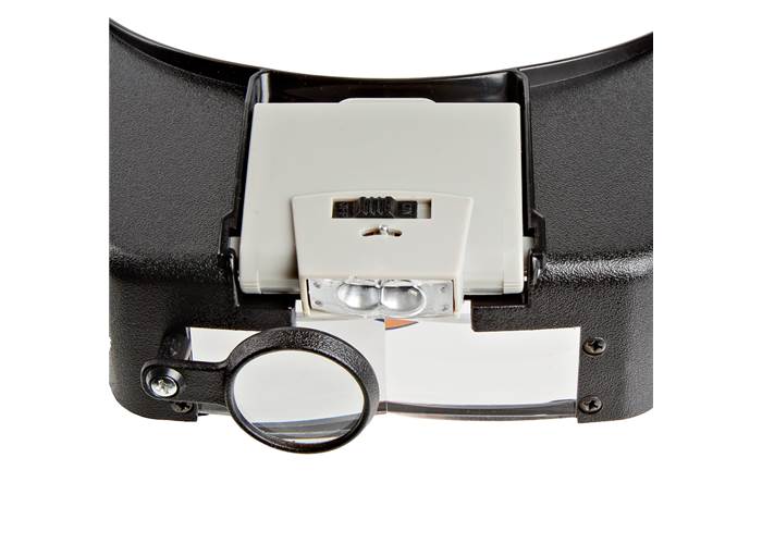 This is an update on the classic head magnifier! The iFixit Head Magnifier has two bi-lenses (the second lens flips down from inside) and one loupe, allowing for four levels of magnification from 1.5x to 7.5x. LED lighting built in uses two AAA batteries (not included).