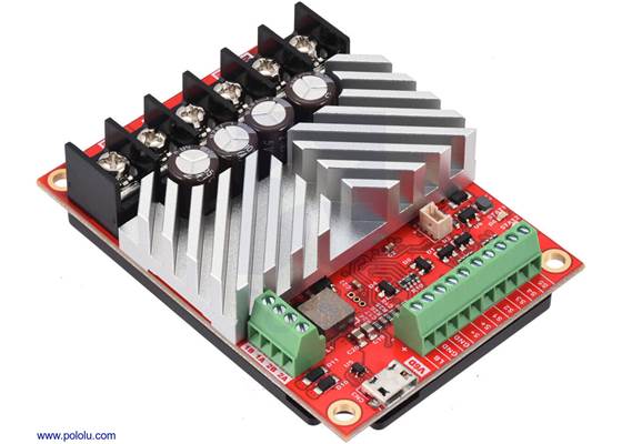 The RoboClaws from Basicmicro are a family of efficient, versatile, synchronous regenerative motor controllers. They can supply brushed DC motors with 7.5 A, 15 A, 30 A, 45 A, 60 A, 120 A, or 300 A continuous (depending on the model) at voltages from 6 V to 34 V, 6 V to 60 V, or 10.5 V to 60 V (also depending on the model), and they allow for peak currents well above the maximum continuous ratings. The “Solo” versions feature a single motor control channel while the dual versions (denoted by a “2x” in their names) offer two channels for controlling a pair of motors.